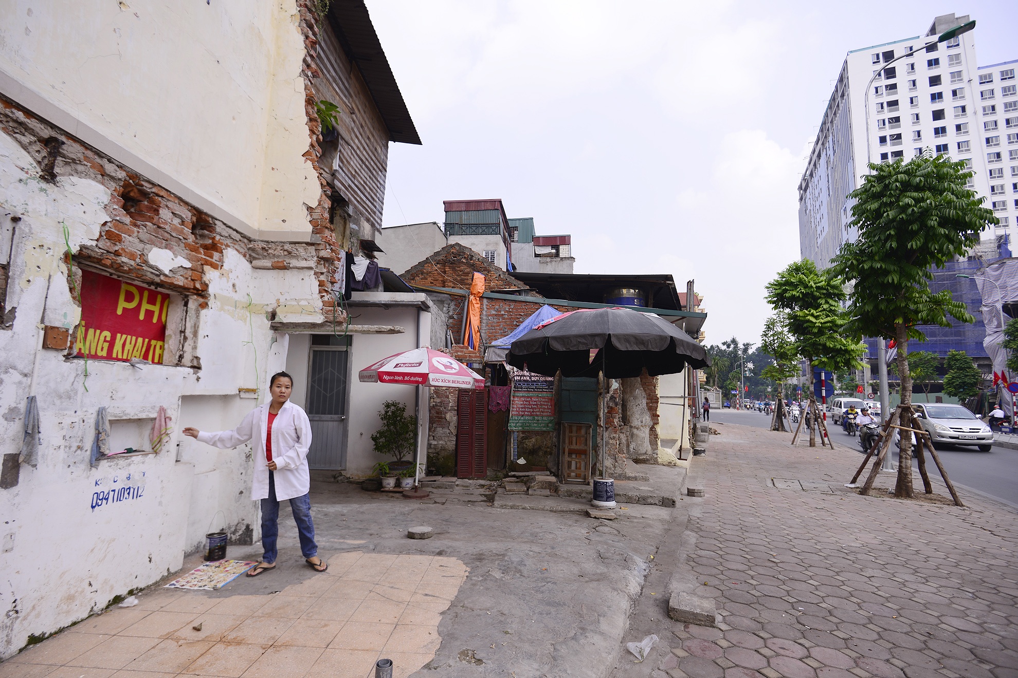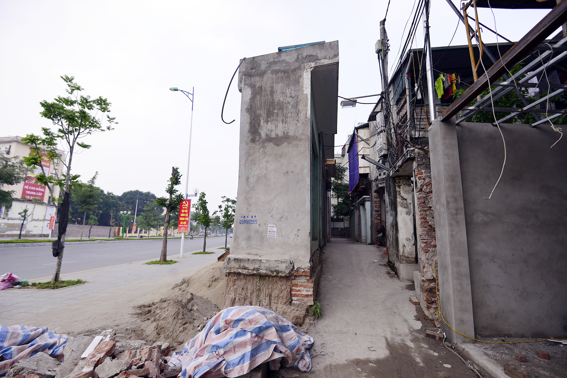| Có ngôi nhà sau khi giải tỏa chỉ còn lại một bức tường và được rao bán bởi sau khi giải phóng mặt bằng, mảnh đất này chỉ còn có bề rộng 0,14 m, dài hơn 10 m. |