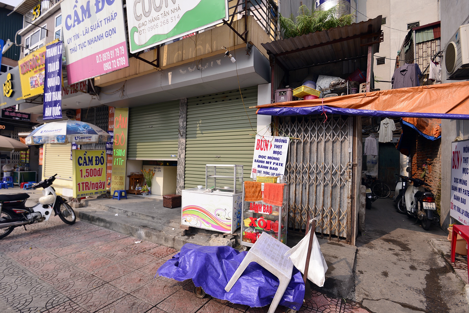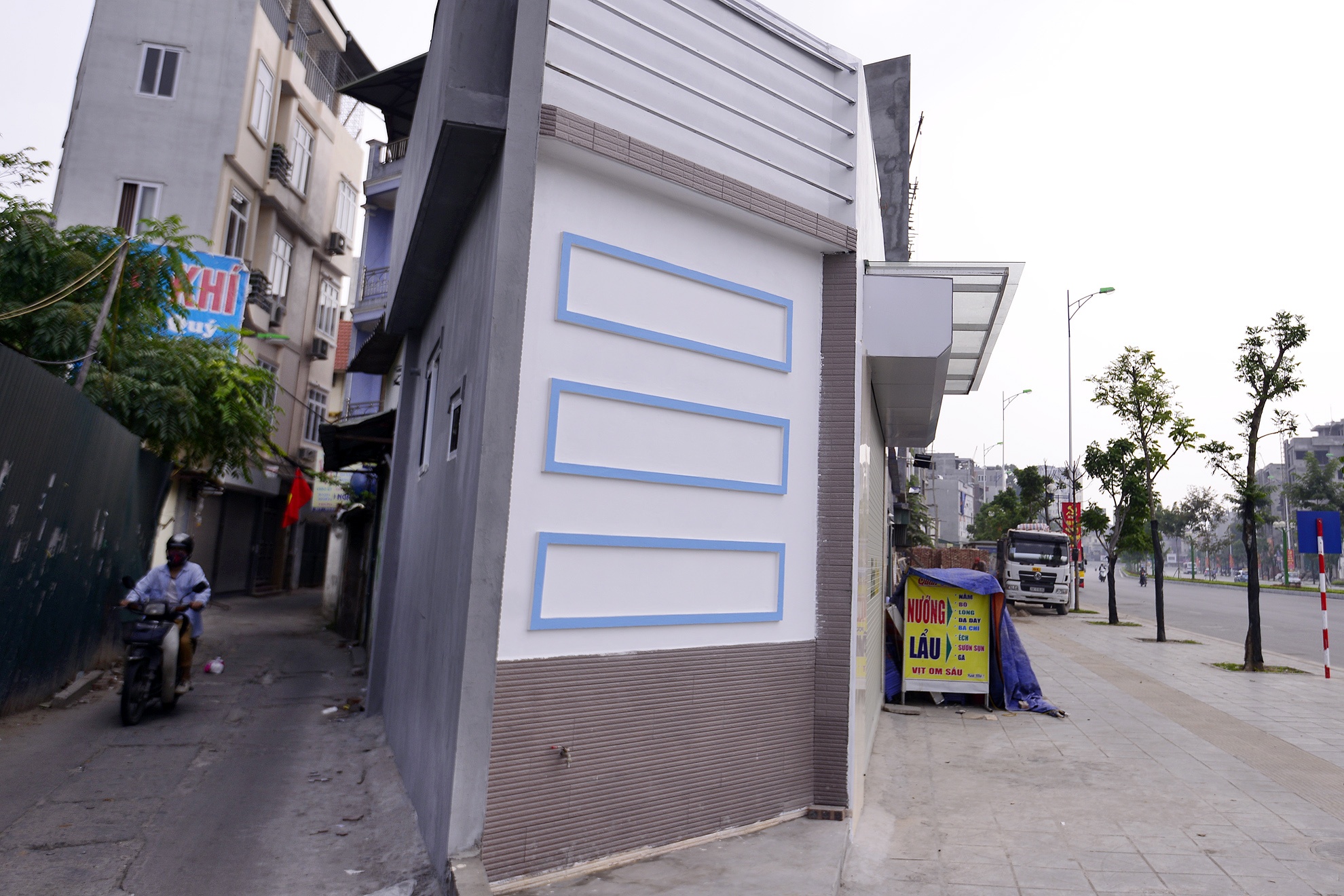 | Một quán ăn tận dụng mặt tiền dài 2 m của ngôi nhà chưa bị phá dỡ để kinh doanh. |