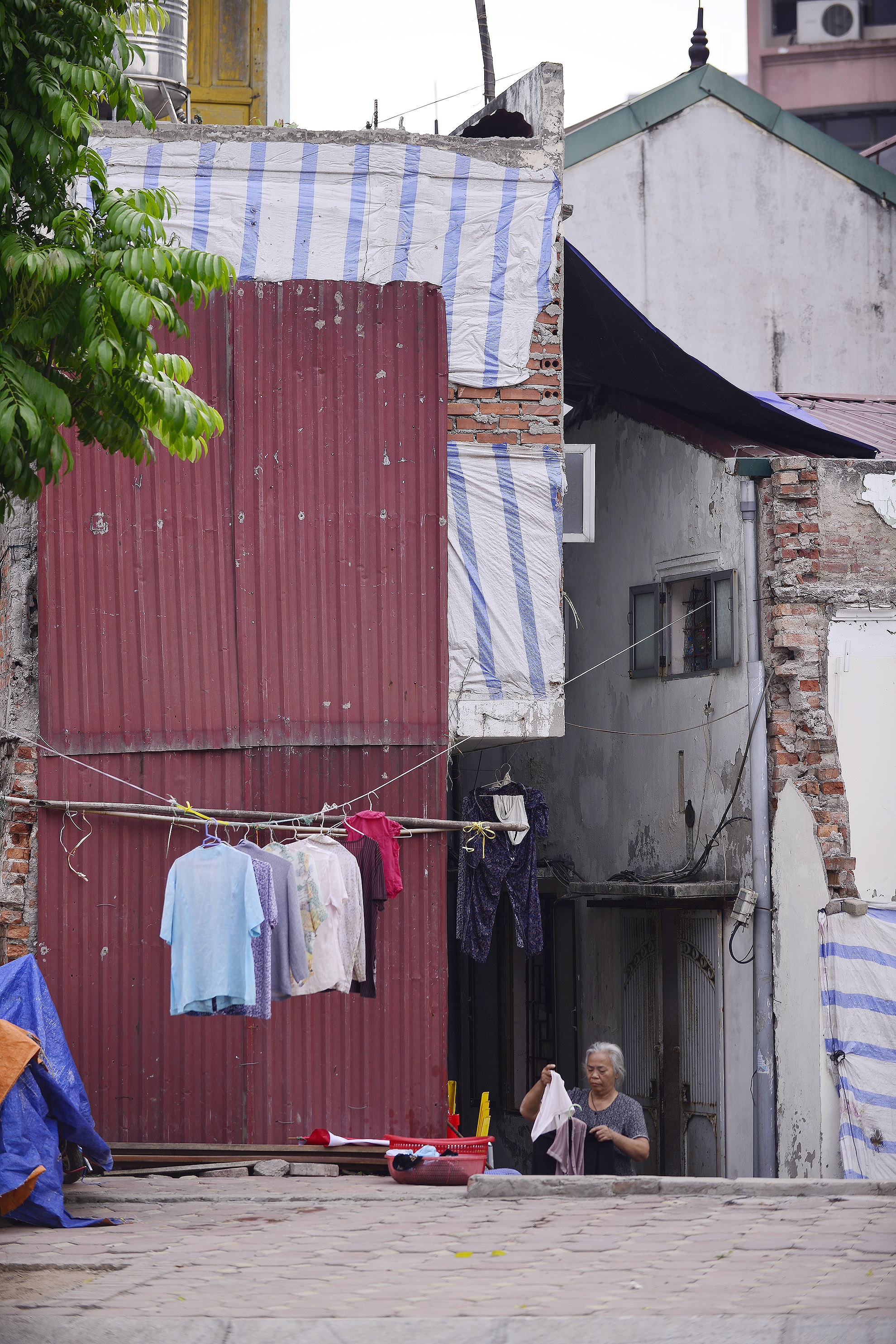 | Thậm chí, có hàng chục ngôi nhà được tháo dỡ, đập bỏ dở dang hoặc quây tôn tạm bợ. |