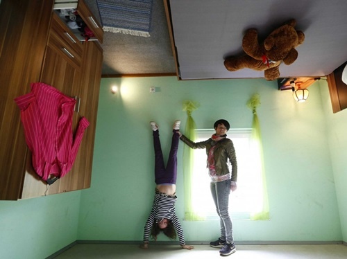 | Phòng ngủ của căn nhà lộn ngược. |