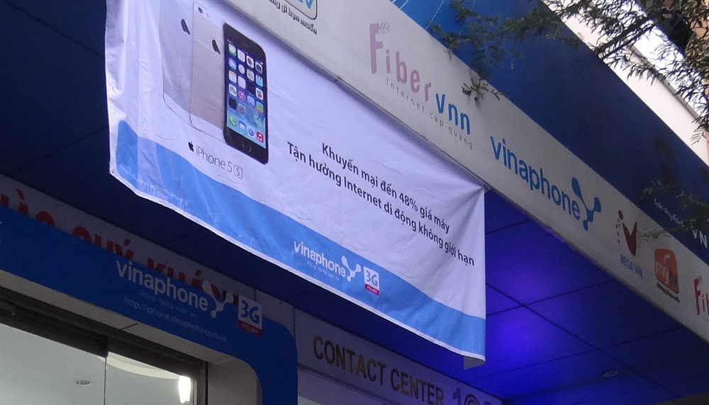 | Một cửa hàng của Vinaphone đã treo biển thông báo bán iPhone 5S |