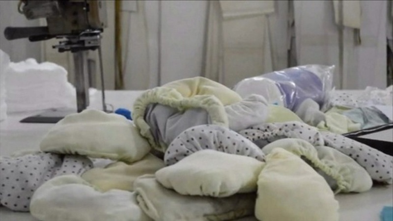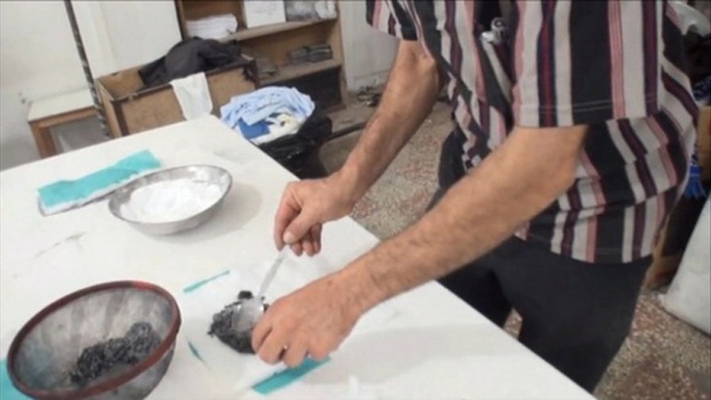 Cận cảnh một khâu trong quá trình sản xuất mặt nạ chống độc ở nhà máy phía đông thủ đô của Syria. Ảnh: ITV.
