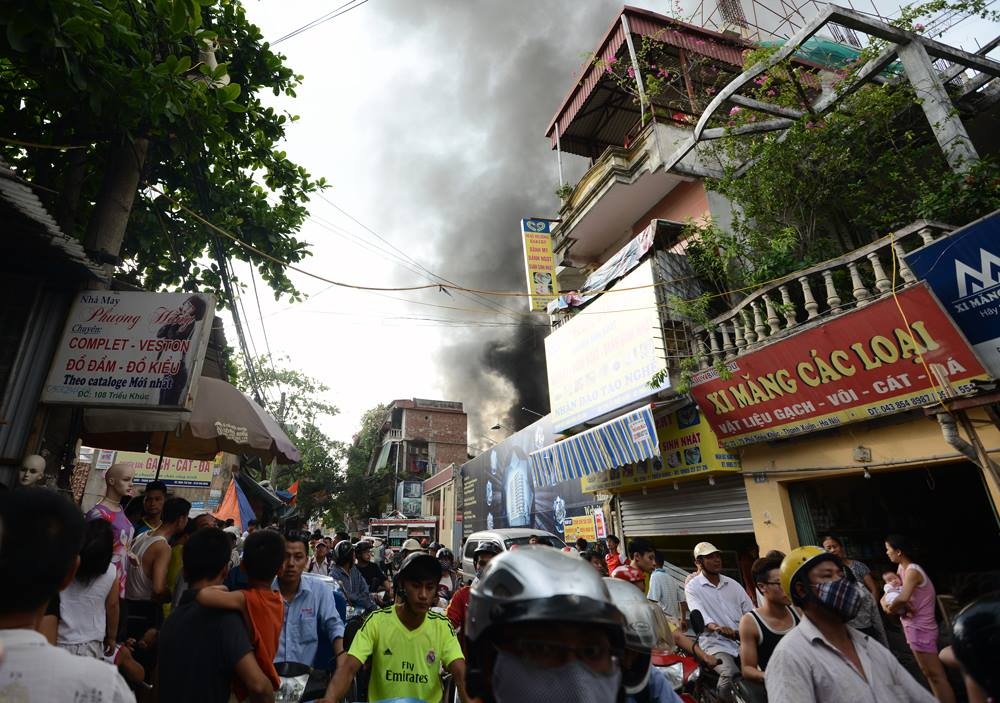 Theo ghi nhận, chỉ sau ít phút, hỏa hoạn đã làm sập một phần mái ở tầng hai của xưởng. Người dân quanh khu vực nhốn nháo, hỗn loạn. Giao thông qua đường Triều Khúc đình trệ. Điện lưới ở khu vực này bị cắt.
