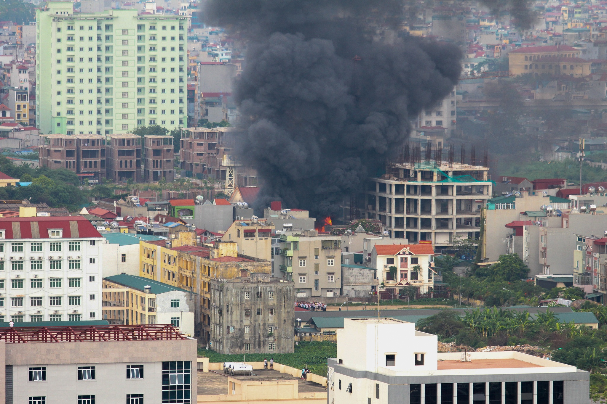 Chiều 7/7, ngọn lửa kèm cột khói hàng trăm m bốc lên ở Triều Khúc (Thanh Xuân, Hà Nội). Điểm phát cháy là nhà xưởng công ty sản xuất phụ tùng ôtô.