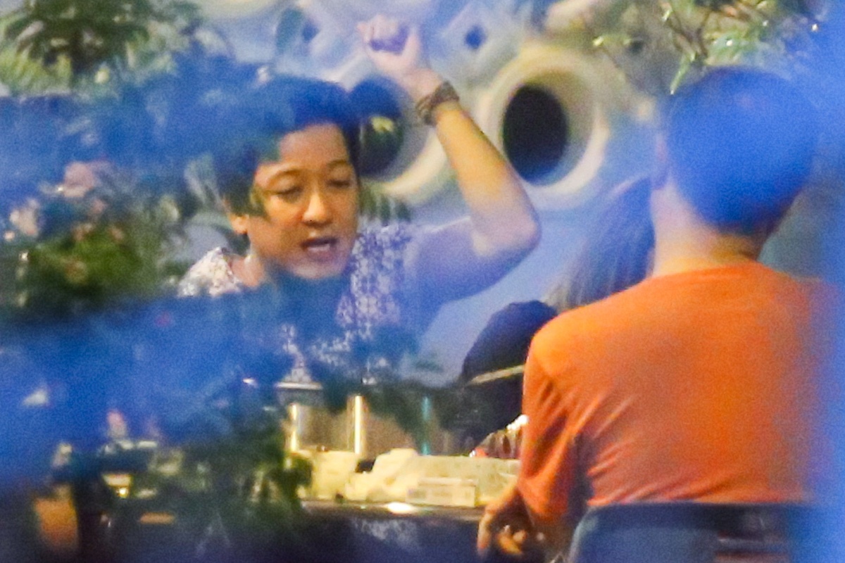 Cách đây vài ngày, Trường Giang bị Quế Vân tố lăng nhăng, lừa dối cô. Dù yêu Nhã Phương nhưng anh vẫn lén lút qua lại với nữ ca sĩ Hà thành. Quế Vân chia sẻ nhiều lần cô nói chia tay nhưng nam dành hài đều níu kéo. Trong ảnh, cả hai thủ thỉ, trò chuyện vui vẻ suốt bữa ăn. |