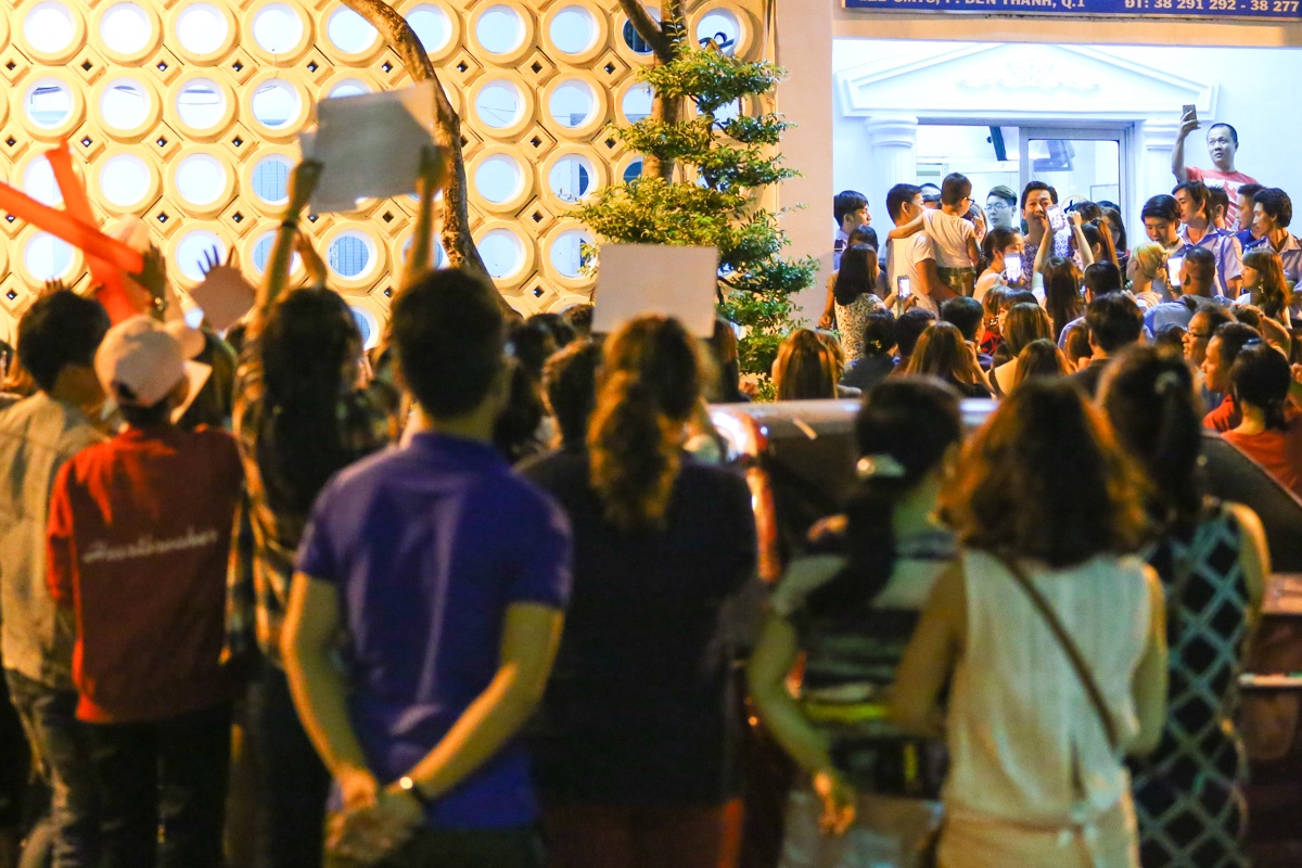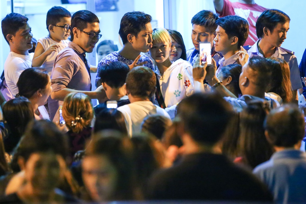 Show diễn kết thúc lúc 11h30 nhưng 12h Trường Giang mới có thể ra xe vì rất nhiều fan đứng chờ xin chữ ký và chụp hình với anh. |