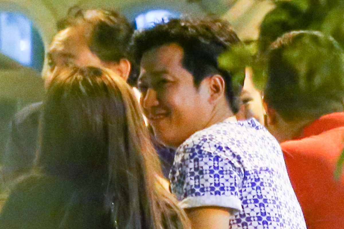Nhã Phương đến cùng trợ lý. Cặp đôi ngồi ăn khuya với ê-kíp, trong đó có cả em trai Trường Giang tới 3h sáng. |