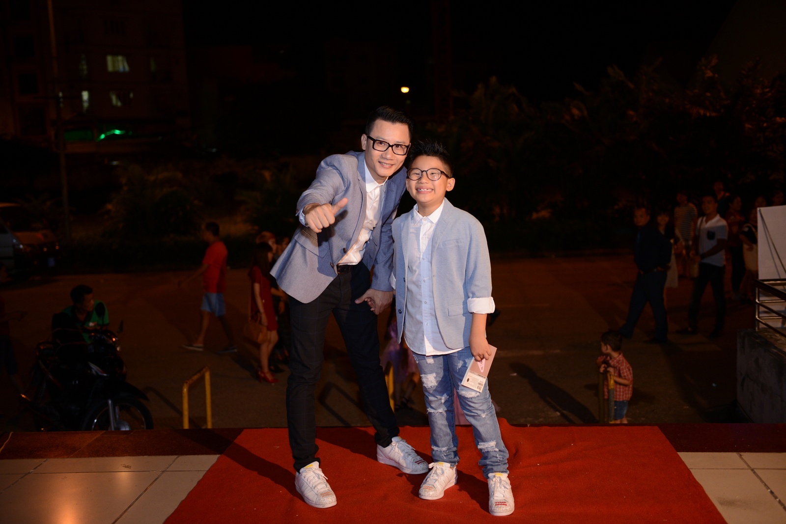 Hai bố con Hoàng Bách mặc đồng điệu, bay từ TP HCM ra Hà Nội để dự lễ trao giải VTV Ấn tượng. Bé Tê Giác ngày càng dạn dĩ trước ống kính.