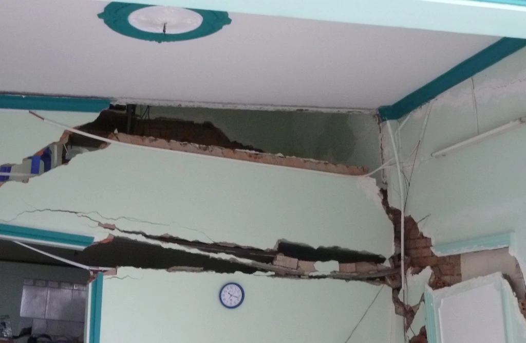| Nhiều vết nứt lớn xuất hiện cả trong và ngoài ngôi nhà. |