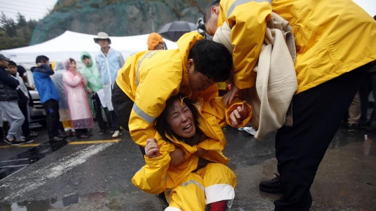 “Các ông đã bơm khí oxy vào tàu chưa? Tàu chìm đã hơn hai ngày. Bọn trẻ trong tàu cần khí oxy”, ông bố một hành khách hỏi ông Kim. Ảnh: AP
