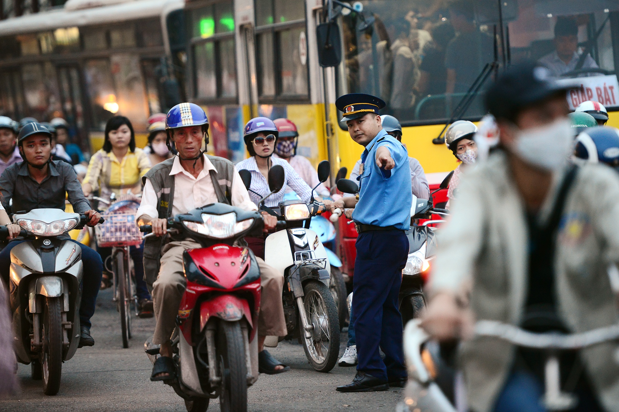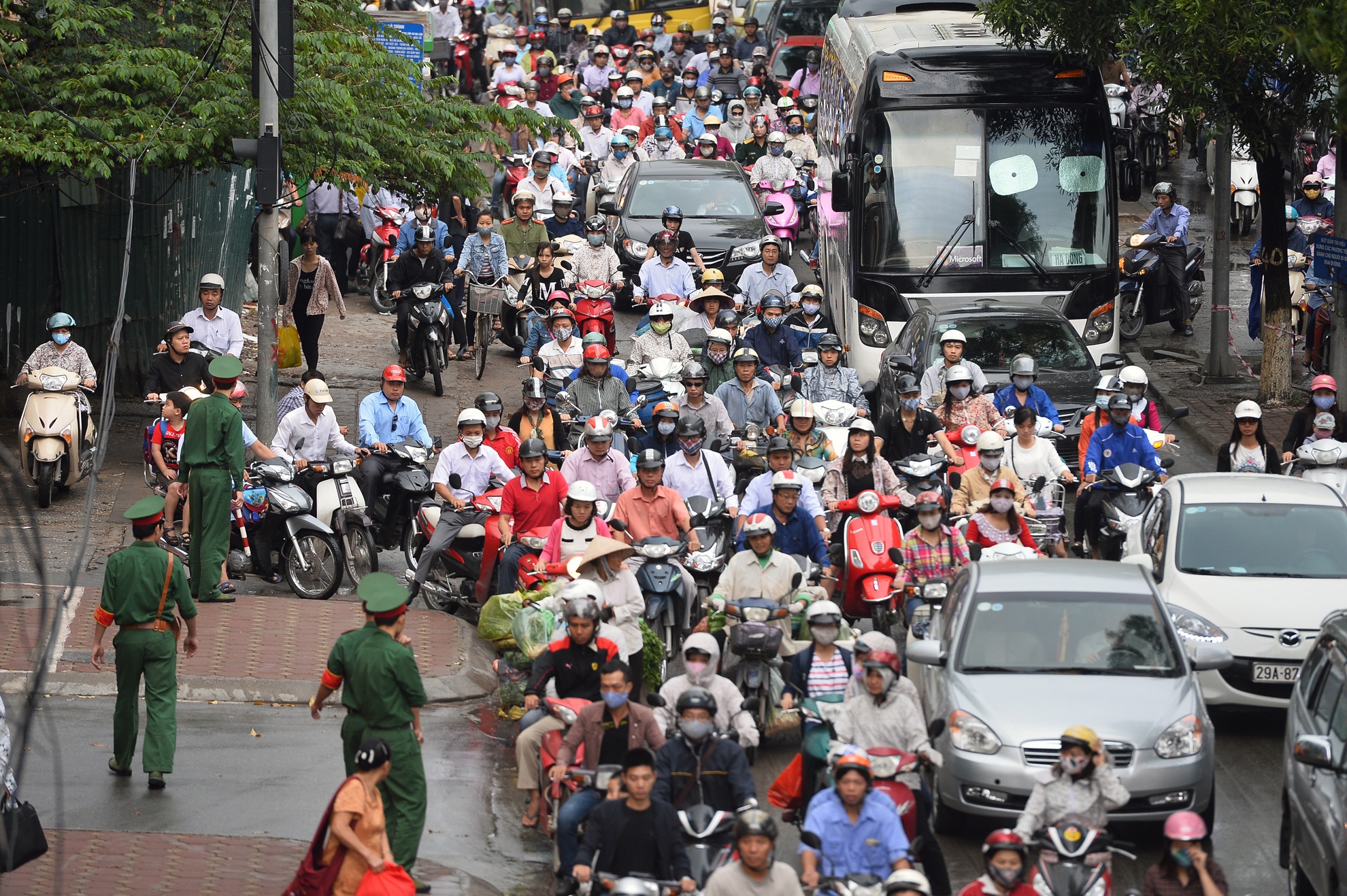 Các chiến sĩ ở một đơn vị trên đường Nguyễn Trãi cũng tham gia hỗ trợ phân luồng giúp người đi đường.