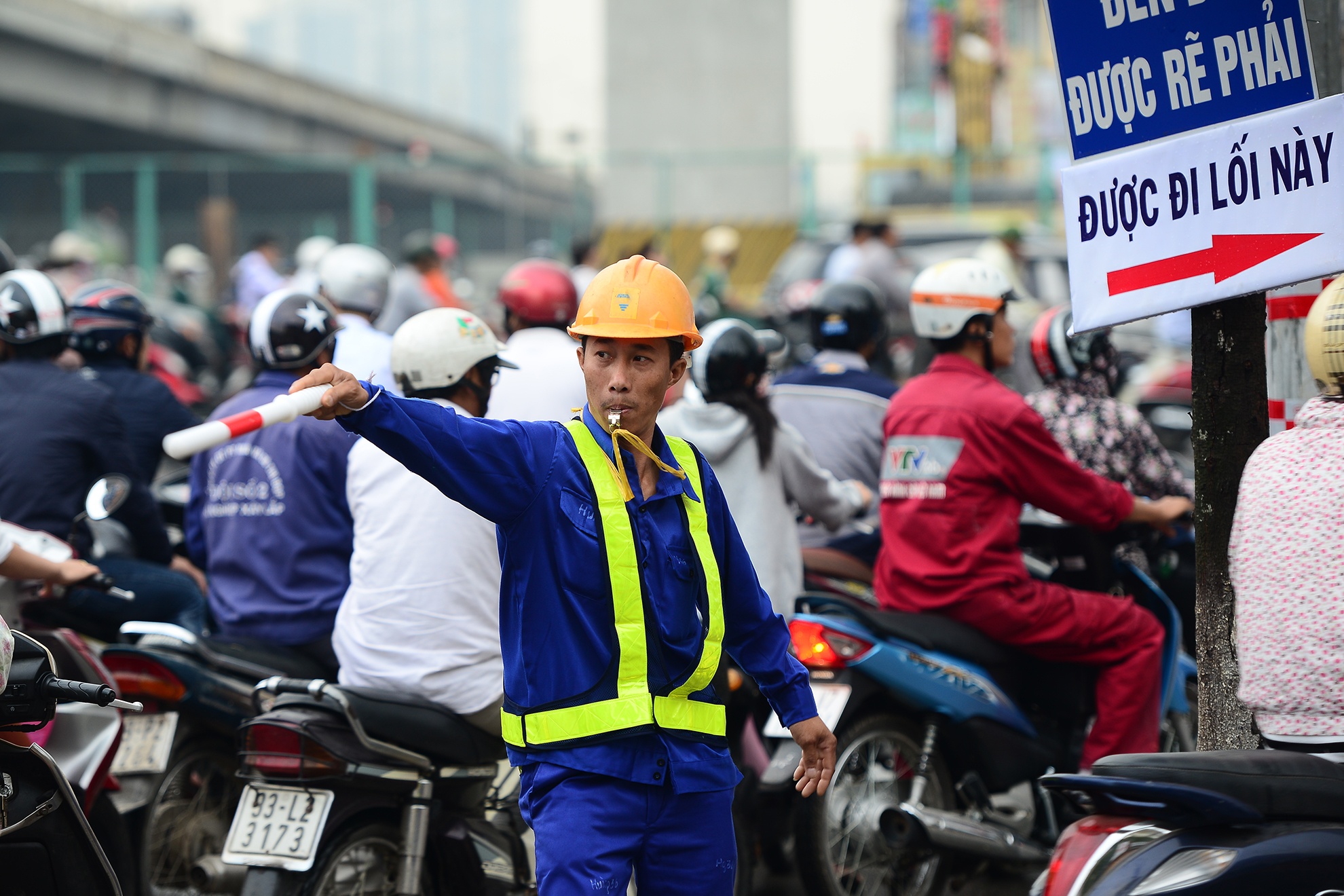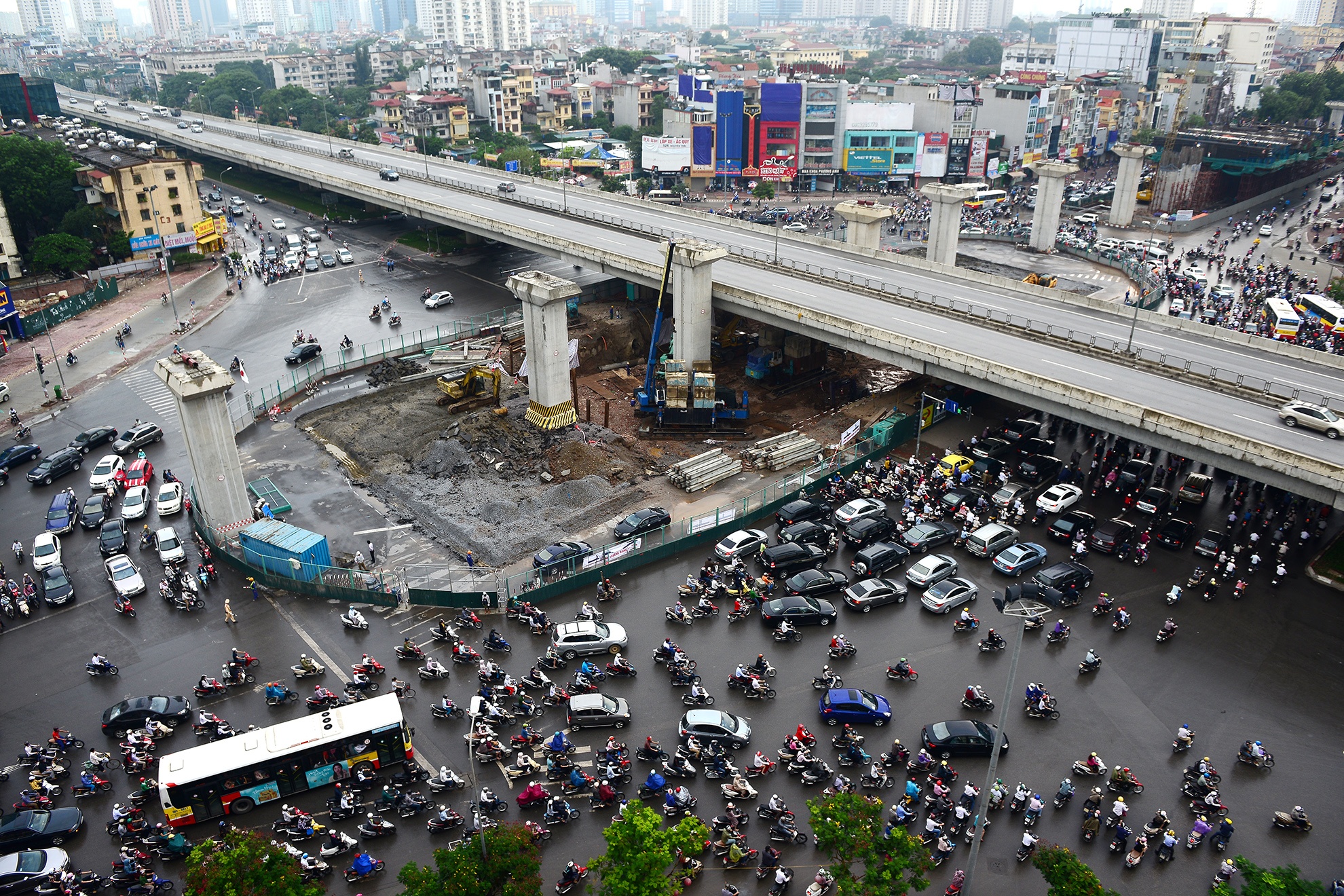 | Trong 3 tháng tới, nhà thầu thi công đường sắt trên cao cũng điều 16 công nhân ra hỗ trợ phân luồng ở 4 góc của nút giao. |