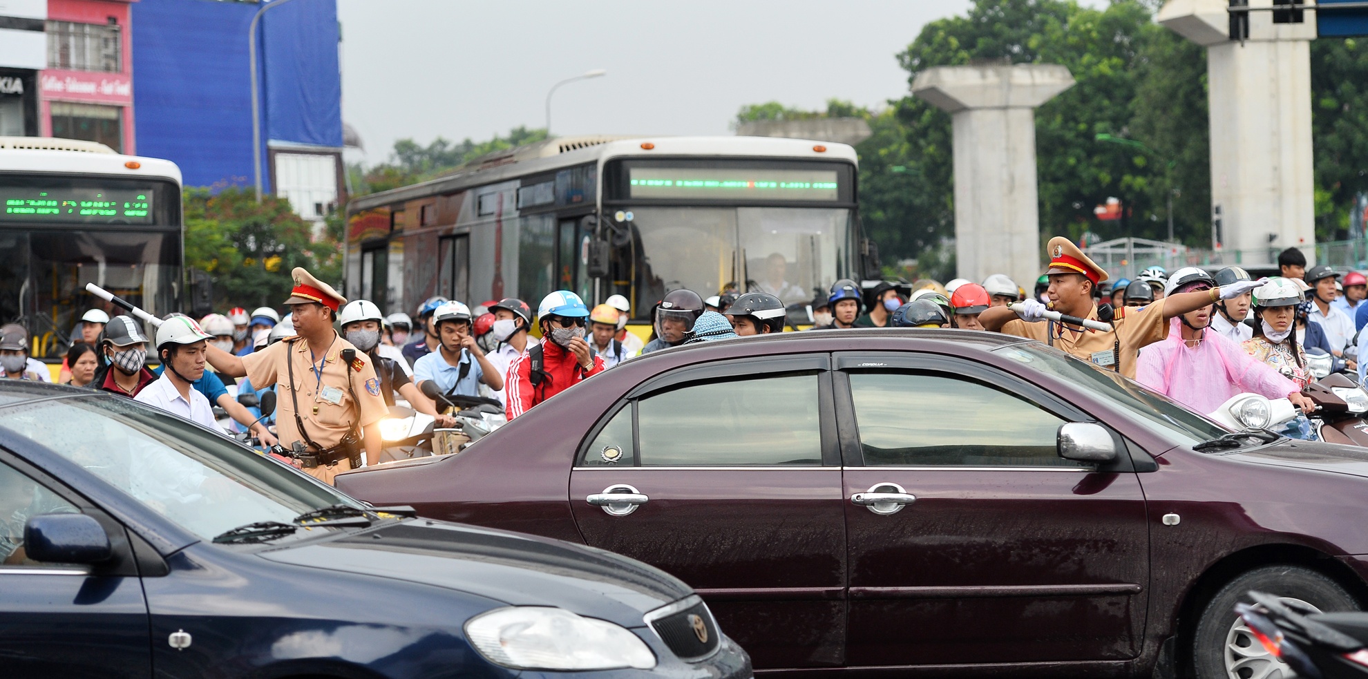 | Riêng tại nút giao này luôn có 15 cảnh sát và thanh tra giao thông phân luồng. |