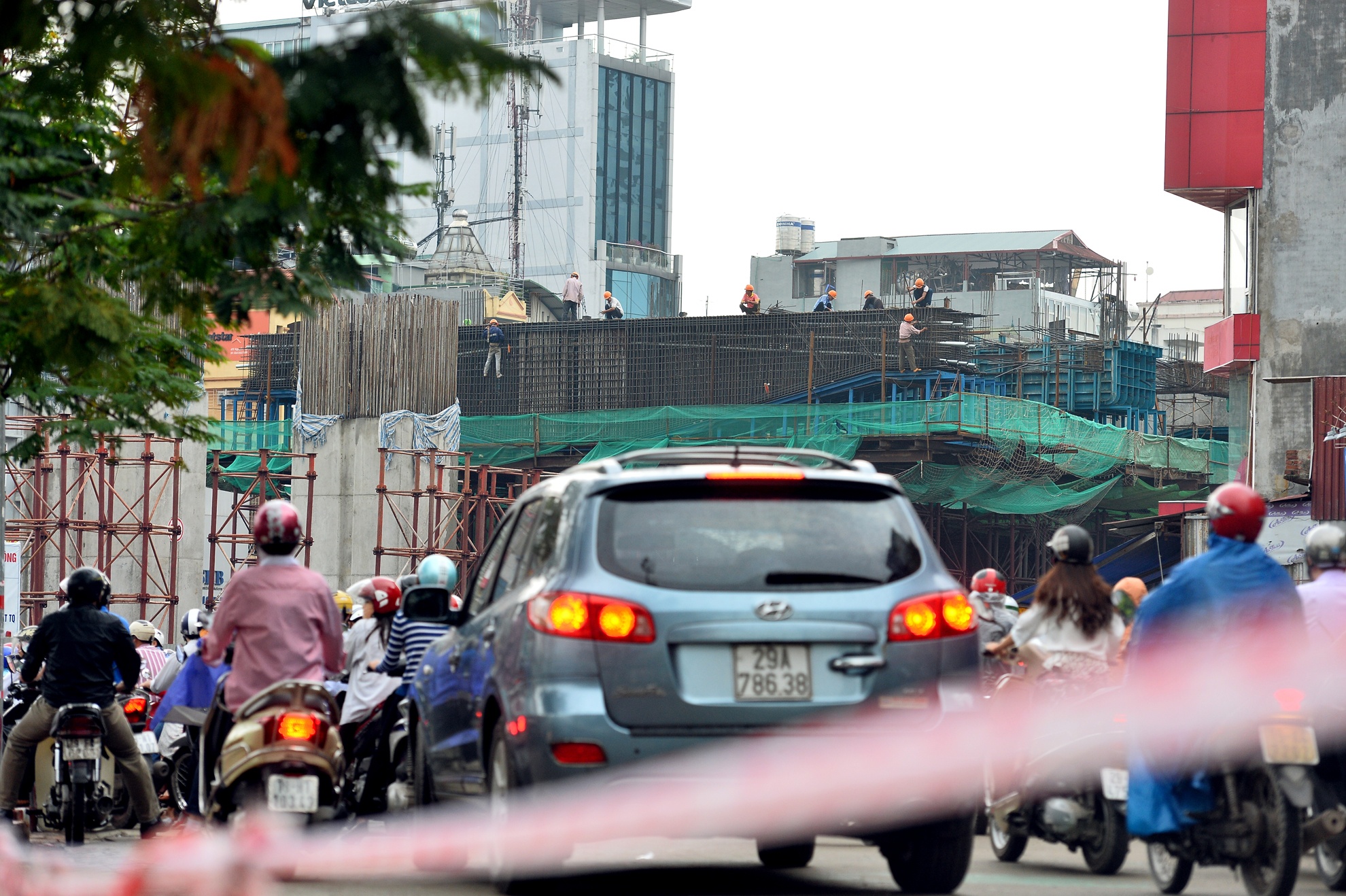 Các lô cốt rào chắn mọc lên tứ phía khiến cho phần đường dành cho ôtô, xe máy ở khu vực này bị thu hẹp.