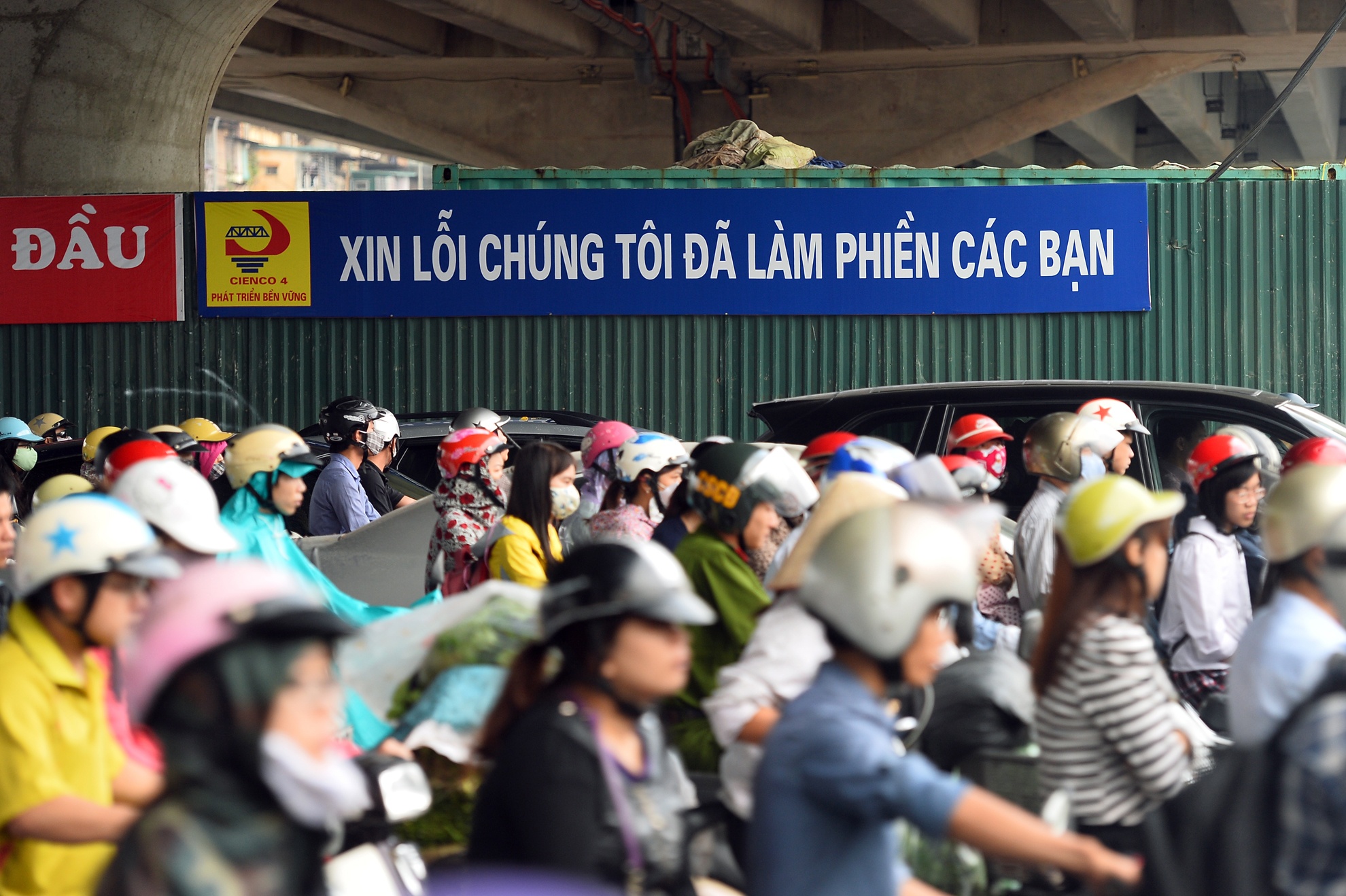 Nhà thầu Cienco 4 đã treo biển xin lỗi người đi đường. Trước đây, chỉ các nhà thầu nước ngoài mới đặt các tấm bảng mang nội dung tương tự.