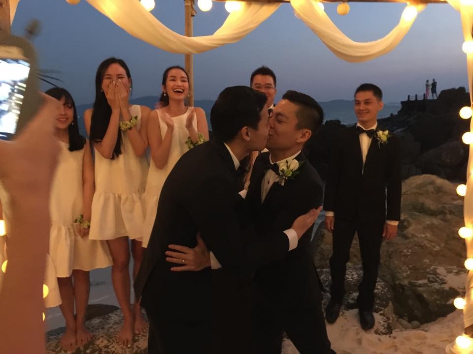 Nhà thiết kế Việt đồng tính hôn bạn đời trong lễ cưới