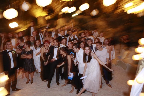 Đa số khách mời đều mặc trang phục gam màu trắng đen, phong cách hiện đại, trẻ trung, phù hợp không gian đêm tiệc nhẹ nhàng, gần gũi.