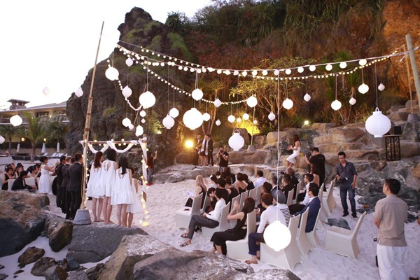 | Khách mời tham dự tiệc cưới là bạn bè thân của nhà thiết kế và bạn trai, bao gồm những gương mặt nổi tiếng trong giới showbiz. Để tham dự tiệc cưới ngày 24, nhiều khách mời đã đến Nha Trang trước đó vài hôm để trợ giúp hai chú rể chuẩn bị phần hậu kỳ. |