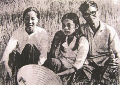 | Giang Nam đoàn tụ với cô du kích Phạm Thị Chiều và con gái ở Củ Chi năm 1973. (Ảnh ANTĐ). |