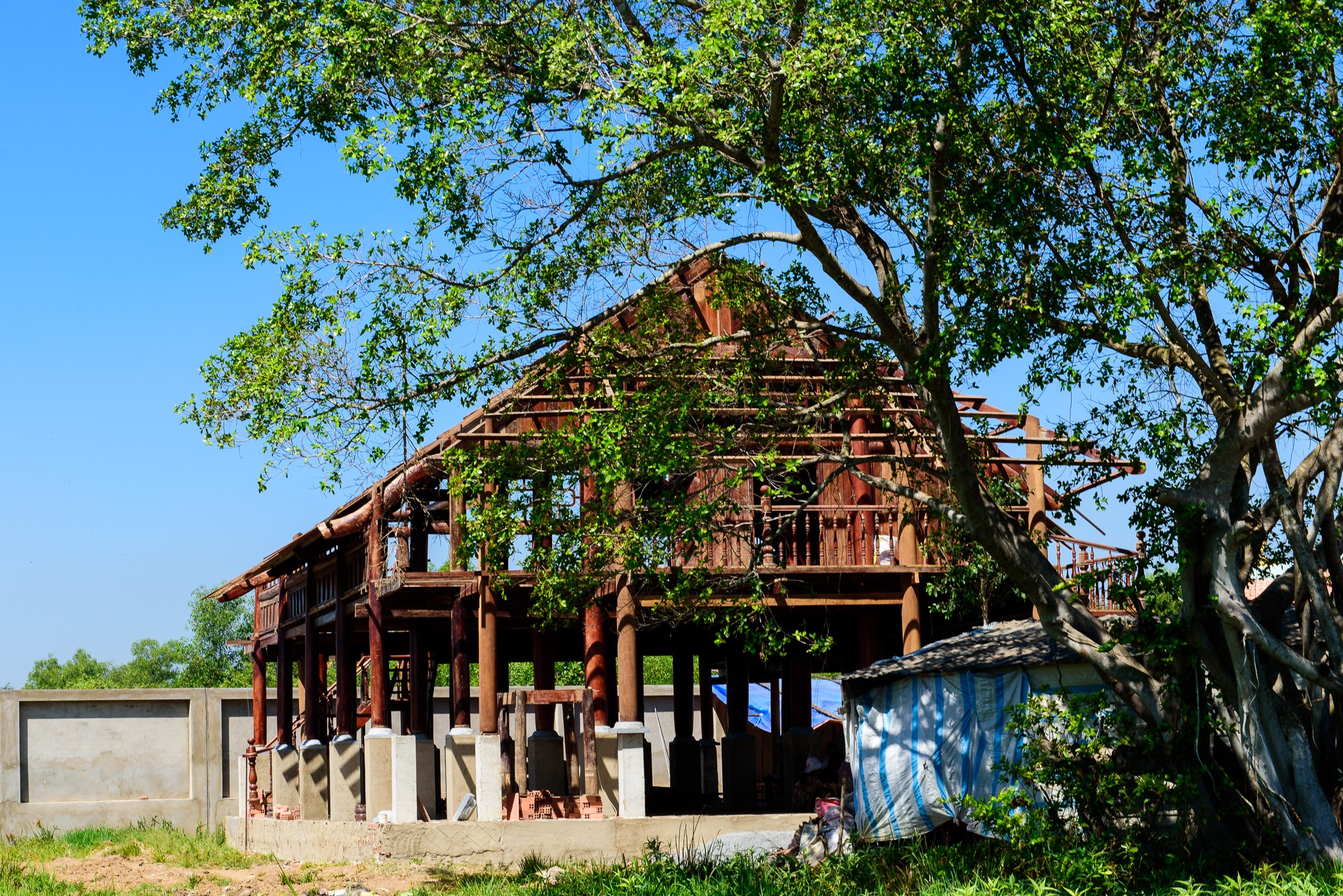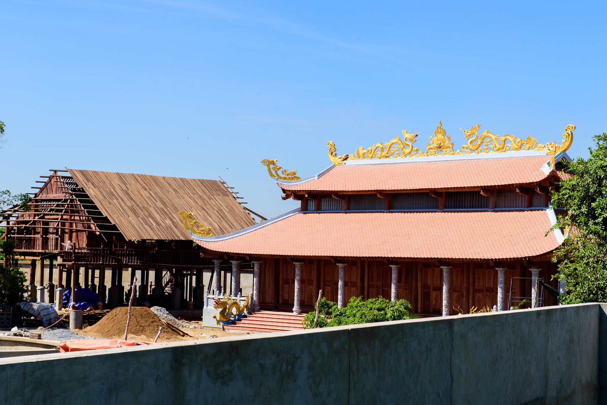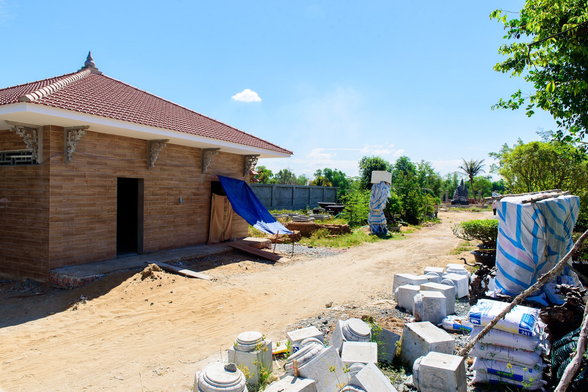 Một mái đình đang thi công đã bị bỏ dở vì chờ giải quyết. Phía gian này chỉ vừa xây dựng căn bản bởi thiếu vật liệu. |