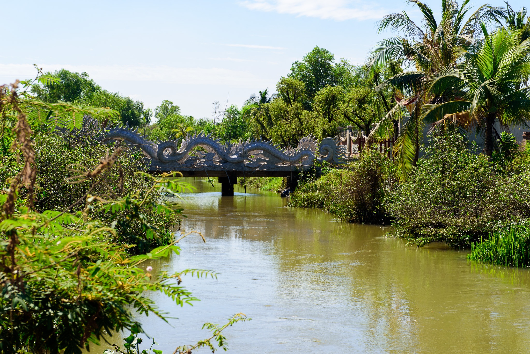 Hoài Linh chọn vùng đất cách xa khu dân cư với cảnh sông nước hữu tình. Lối đi vào nhà thờ được án ngữ bởi 2 con rồng uy nghiêm nằm vắt qua dòng sông. Các nhà điêu khắc vẫn chưa hoàn thành khâu chạm trổ và trang trí. |