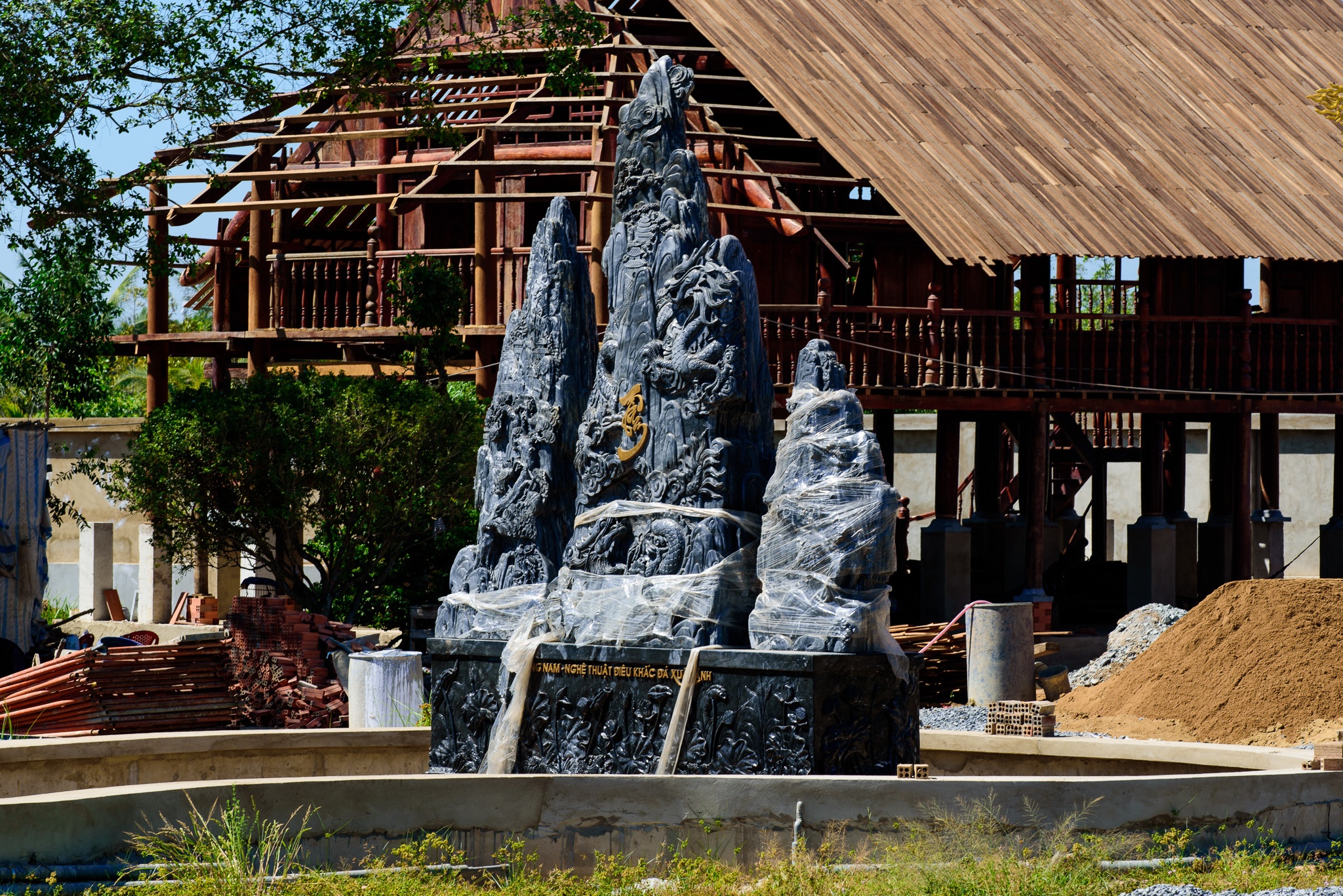 Ba tảng đá nằm trước đền thờ được khắc chữ kỳ công. Theo tiết lộ của những đồng nghiệp, Hoài Linh sống rất đơn giản và tin vào tâm linh. Vì thế, anh đã dốc hết sức lực, tiền tài để hoàn thiện tâm nguyện của đời mình. |