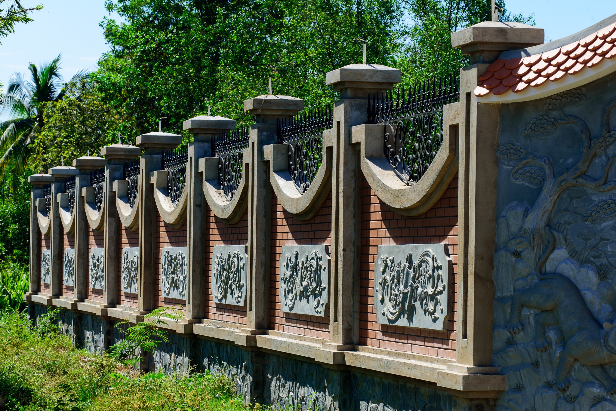 Bức tường bao bọc nhà thờ chỉ vừa xong khâu chạm trổ, vẫn chưa kịp sơn phết. |