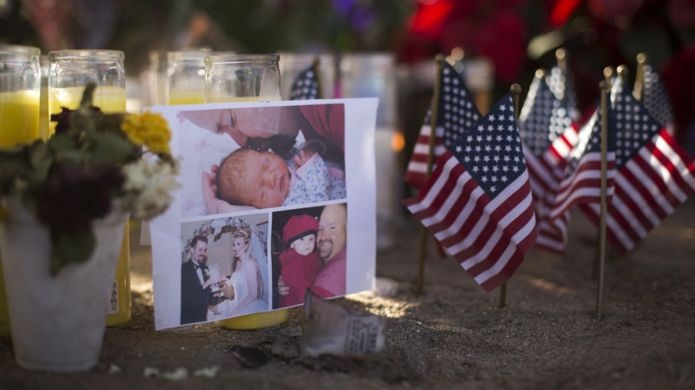 | Khu tưởng niệm các nạn nhân vụ xả súng ở bang California do hai phần tử ủng hộ IS gây ra. Ảnh: BBC |