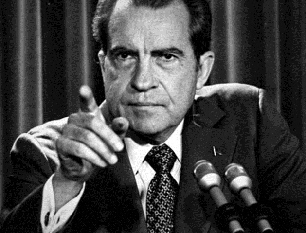 | Tổng thống Richard Nixon (1969 - 1974). Trong nhiệm kỳ đầu tiên, ông đã đạt được những thành tựu nhất định khi đưa quân Mỹ rút khỏi Việt Nam, bình thường hóa quan hệ với Trung Quốc hay hòa hoãn với Liên Xô. Tuy nhiên, nhiệm kỳ thứ hai của ông đã kết thúc sớm khi vụ tai tiếng Watergate xảy ra khiến Nixon trở thành vị tổng thống duy nhất trong lịch sử Mỹ phải từ nhiệm khi đương chức. Nixon sau đó được ân xá và ông đã dành những năm cuối đời để khôi phục hình ảnh của mình. Ông qua đời vì chứng đột quỵ. |