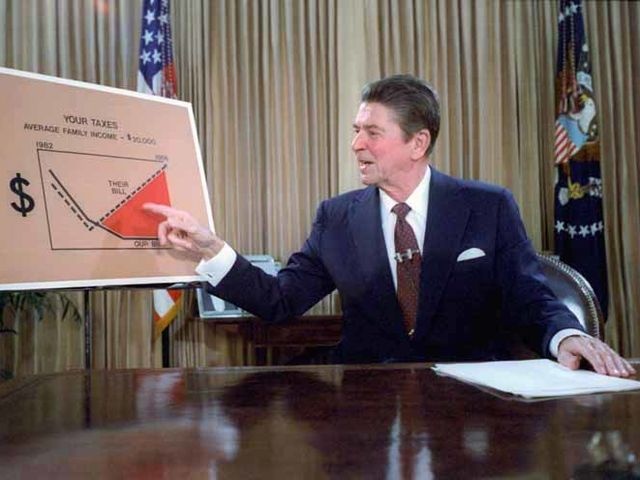 | Tổng thống Ronald Reagan (1981 - 1989). Vị tổng thống thứ 40 của nước Mỹ từng bị ám sát hụt trong nhiệm kỳ đầu tiên. Ngoài "học thuyết Reagan" trong lĩnh vực kinh tế, ông cũng để lại không ít vấn đề gây tranh cãi, như việc kết thúc Chiến tranh Lạnh, vụ không kích Libya và đặc biệt là vụ bê bối Iran-Contra khiến Reagan bị cộng đồng quốc tế chỉ trích nặng nề. |