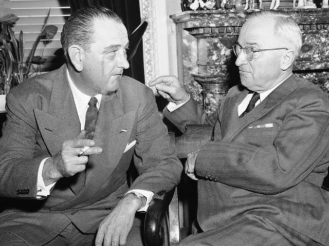 | Tổng thống Harry S. Truman (1945 - 1953). Lên nắm quyền lãnh đạo khi chiến tranh thế giới thứ hai đi đến kết thúc, Truman gặp nhiều khó khăn trong việc ổn định tình hình nước Mỹ vốn đã chịu nhiều tổn thất từ cuộc chiến. Không chỉ vậy, nhiệm kỳ của ông cũng là khởi đầu cho cuộc Chiến tranh Lạnh kéo dài hơn 40 năm giữa Mỹ và Liên Xô với các sự kiện như phong tỏa Berlin, thành lập NATO, chiến tranh Triều Tiên. Sau khi mãn nhiệm, ông phải đối đầu với khó khăn lớn về tài chính và vợ chồng ông là 2 người đầu tiên ở Mỹ được nhận trợ cấp y tế từ chính phủ. |