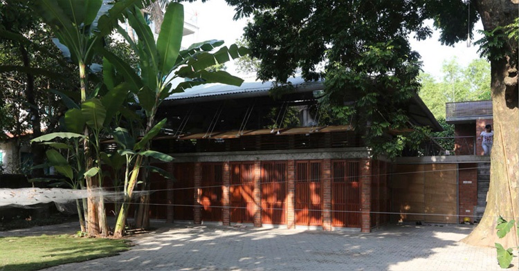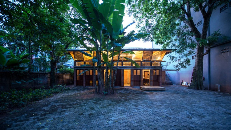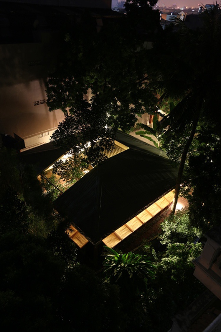 Theo giới thiệu của trang Designboom, ngôi nhà có kiến trúc 2 tầng, lấy ánh sáng bằng cửa sổ truyền thống với vật liệu chính là gạch nung mộc và tre nằm ngay tại trung tâm Hà Nội.