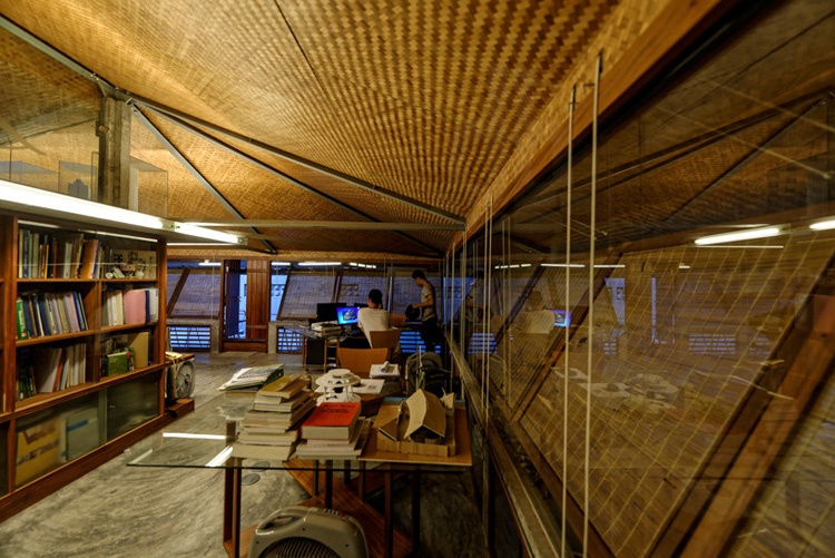 | Phần mái nhà được lợp bằng nan tre, với hệ thống giầm côt pha tre, cửa gỗ hoặc cửa không sơn. Ảnh: Designboom. |