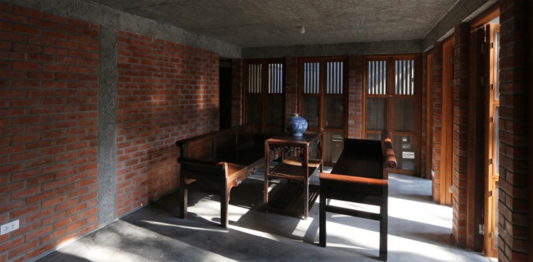 | Gạch nung trần được sử dụng để tăng sự hòa hợp trong ngôi nhà đậm tính truyền thống này. Ảnh: Designboom. |