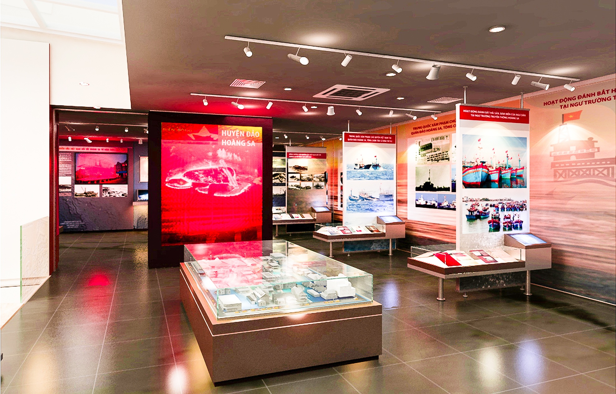 | Phối cảnh một góc của khu vực trưng bày bằng chứng chủ quyền của Việt Nam đối với quần đảo Hoàng Sa. |