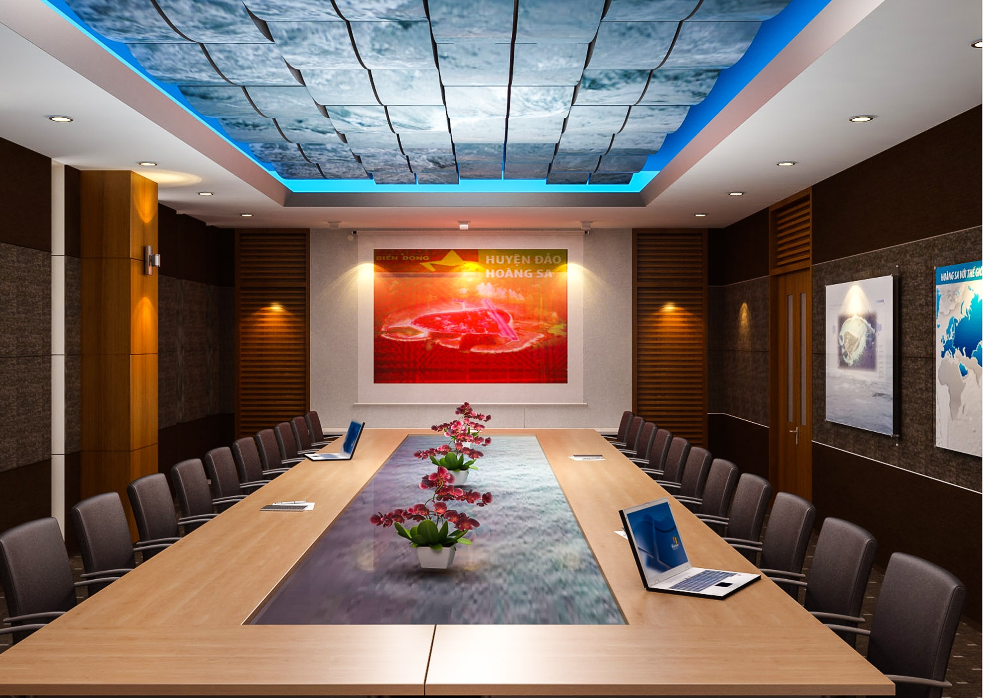 "Hôm nay ngày 19/1, tức 42 năm ngày Trung Quốc dùng vũ lực cưỡng chiếm trái phép quần đảo Hoàng Sa của Đà Nẵng. Chính vì vậy, Hội Khoa học Lịch sử phối hợp UBND huyện Hoàng Sa tổ chức hội thảo khoa học đúng dịp này để làm điều có ích gì đó cho Hoàng Sa", ông Tiếng nói. Trong ảnh: Phòng hội thảo trong tòa nhà.