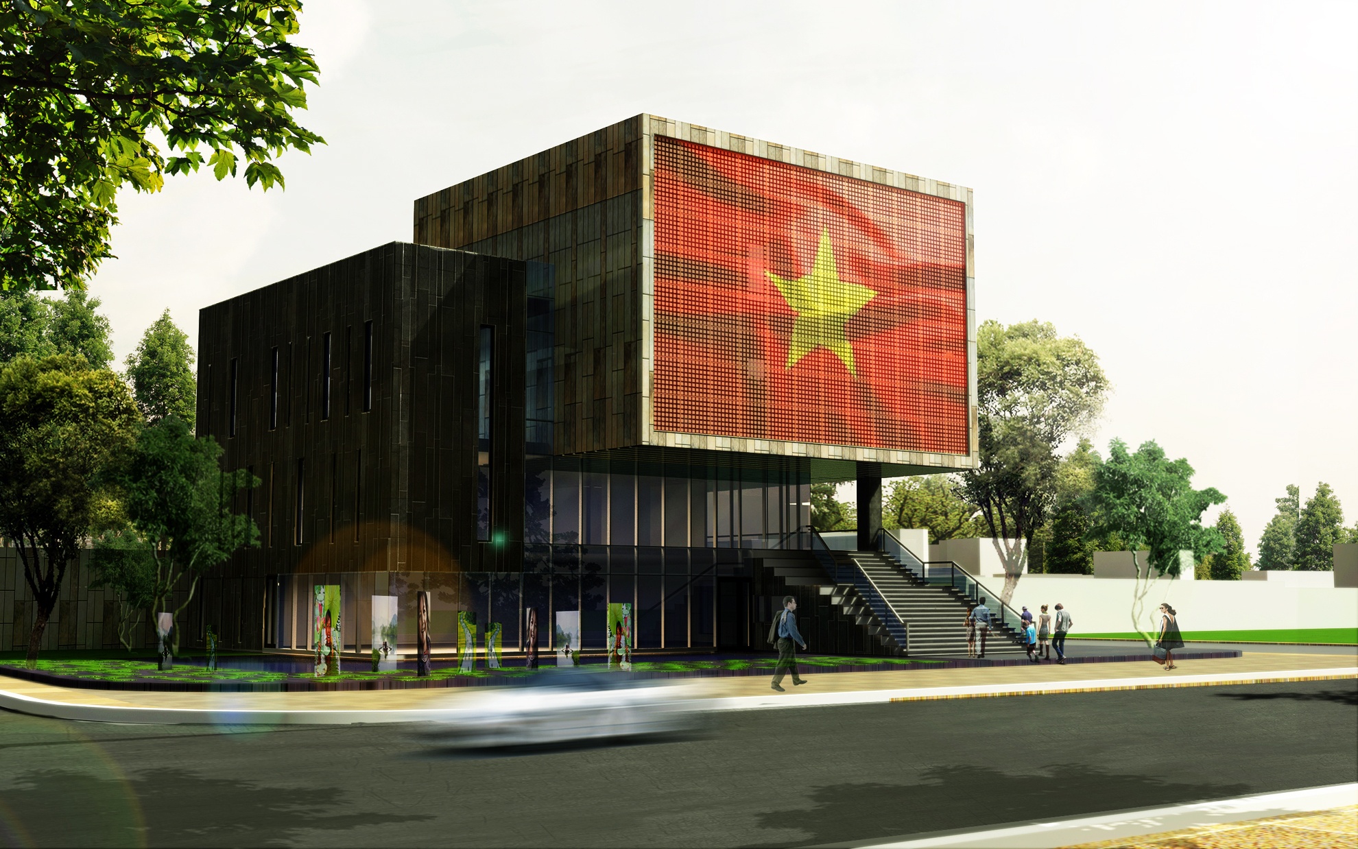 Nhà trưng bày Hoàng Sa cao 18 m, tổng vốn đầu tư 40 tỷ đồng. Công trình được thiết kế, xây dựng theo phương án kiến trúc "Con dấu chủ quyền của đất nước Việt Nam".