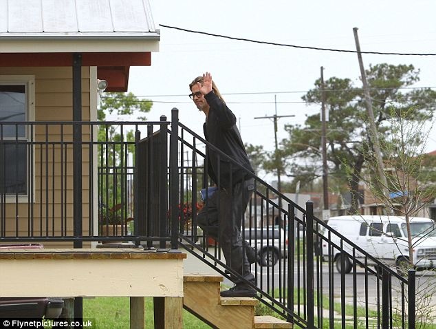 | Brad Pitt tại một trong những ngôi nhà do tổ chức từ thiện của anh xây dựng. |