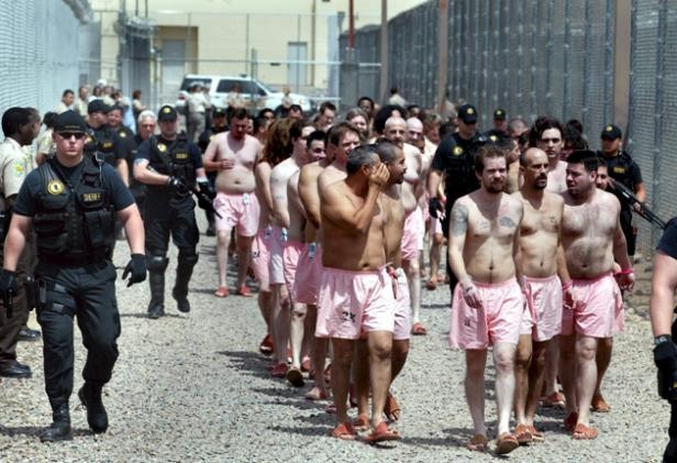 Lực lượng an ninh "tháp tùng" phạm nhân tại nhà tù Maricopa. Ông Arpaio là nhân vật gây nhiều tranh cãi. Hồi tháng 8/2012, ông Arpaio phải hầu tòa vì tội danh phân biệt đối xử, vi phạm Đạo luật Quyền dân sự liên bang cũng như Hiến pháp Mỹ. Ảnh: Flickr.