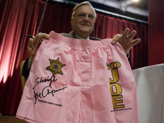Người khởi xướng ý tưởng tù nhân mặc quần chíp hồng là cảnh sát trưởng hạt Maricopa, bang Arizona (Mỹ) Joe Arpaio (trên ảnh). Nhiều năm trước, nhà tù Maricopa xảy ra chuyện phạm nhân ăn trộm quần lót trắng của ban quản lý. Vì thế, ông Arpaio yêu cầu phát cho tất cả tù nhân quần hồng để dễ kiểm soát số lượng. Ảnh: Grumpyelder.