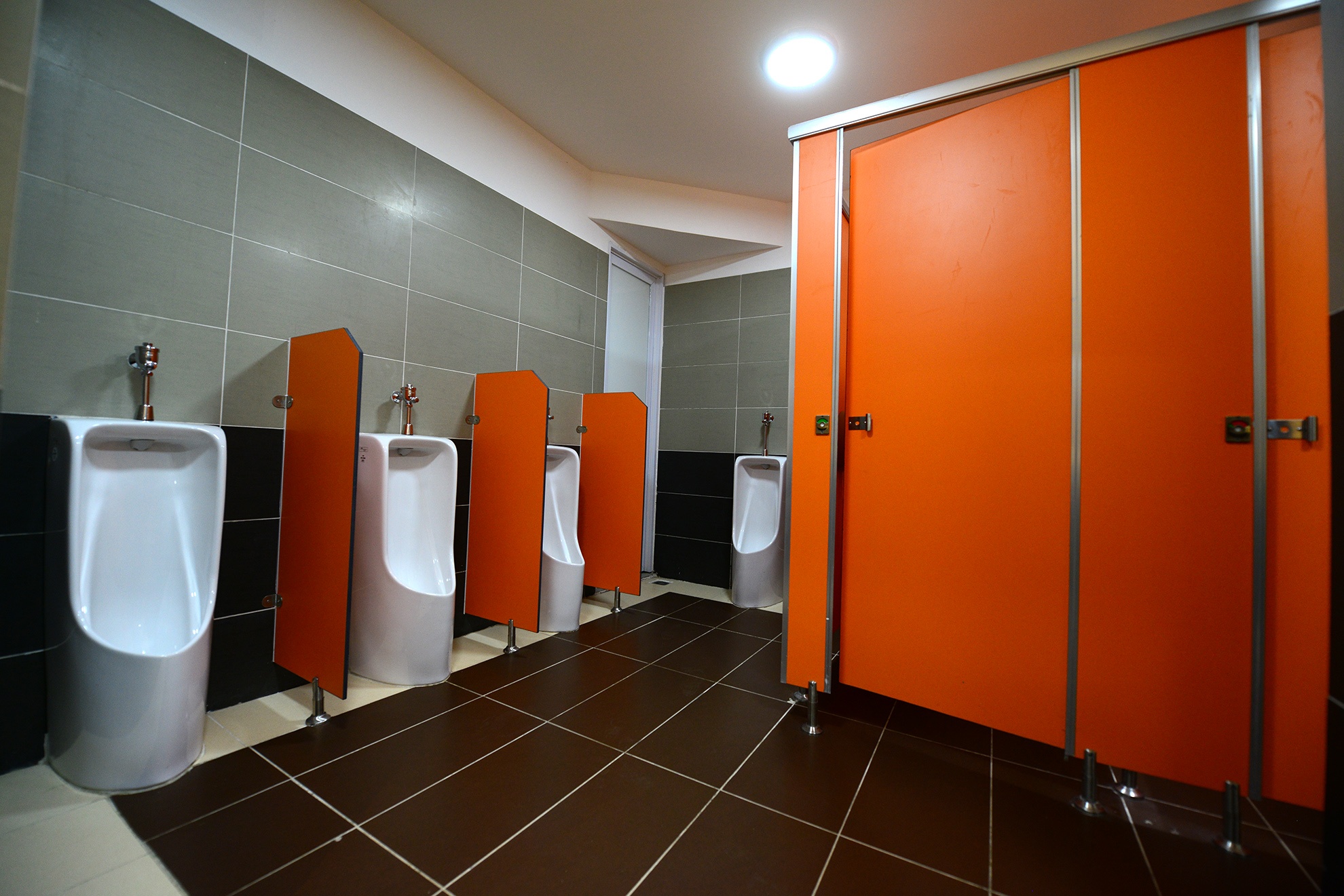 | Tại khu vệ sinh nam có lắp đặt 3 phòng khép kín và 5 bồn vệ sinh đứng, diện tích khoảng 20 m2. "Từ ngày khánh thành, tôi thường xuyên vào đây vì rất sạch sẽ, mát mẻ. Trước đây, khi bí bách lại phải vào quán cafe nhờ vả, khá tốn kém", một tài xế taxi chia sẻ. |