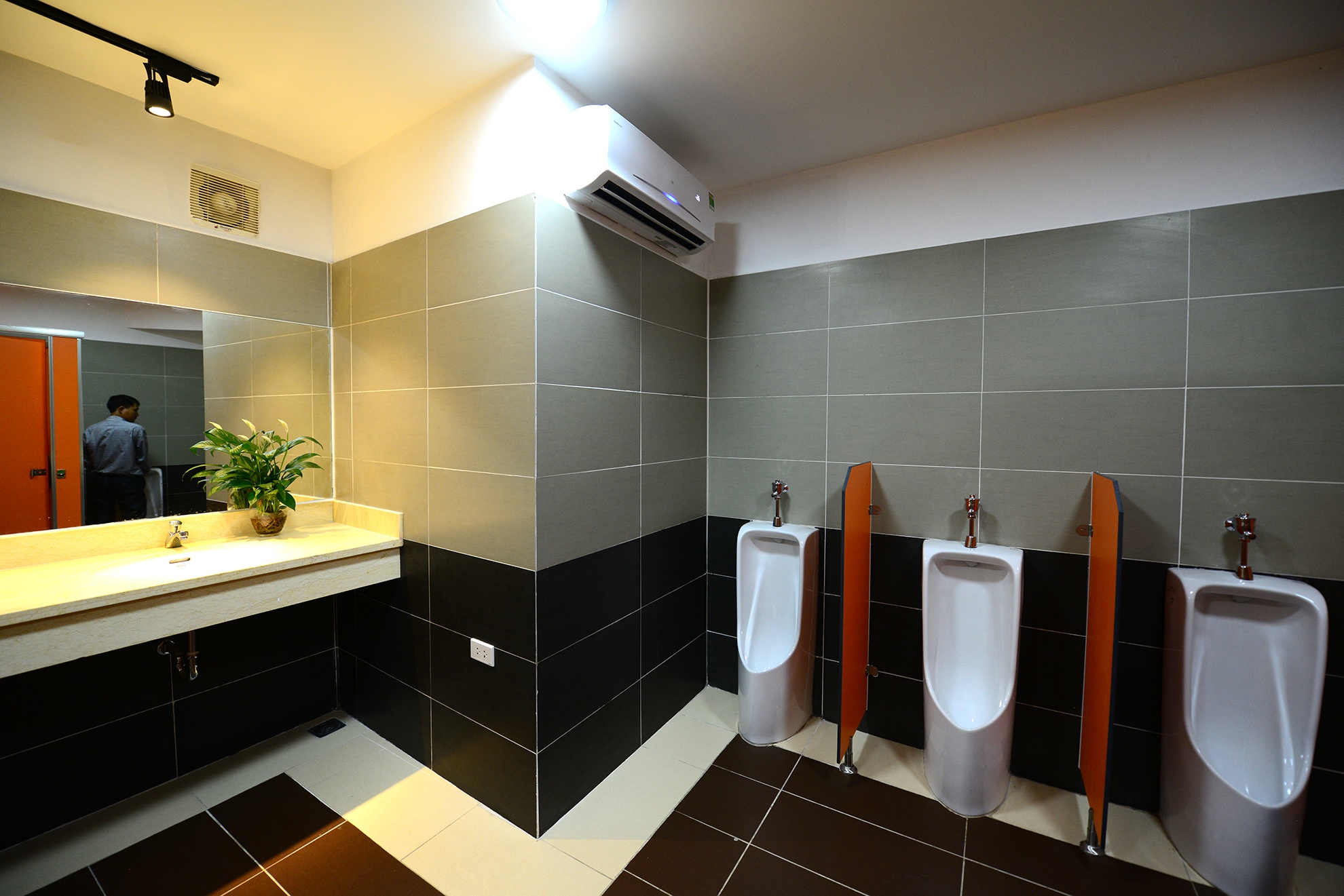 | Toàn bộ khu nhà được lát đá. Điều hoà hai chiều được lắp đặt ở cả 3 khu, bật liên tục đảm bảo nhà vệ sinh luôn mát mẻ khô ráo ở nhiệt độ 28-30 độ C. |