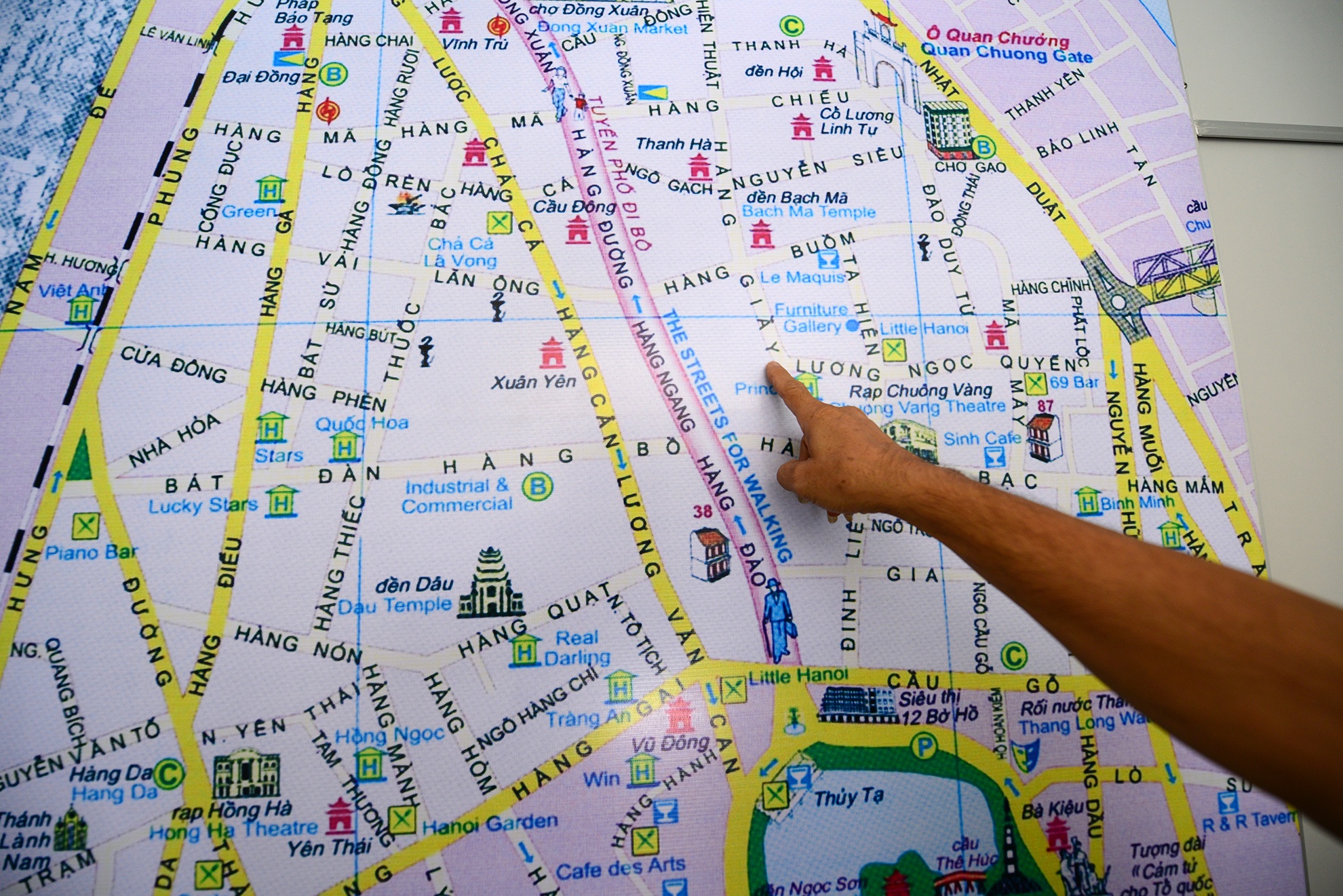 | Trong sảnh của khu nhà còn treo bản đồ phục vụ những du khách lần đầu đặt chân đến Hà Nội có thể tìm đường một cách dễ dàng, tham quan các phố phường xung quanh.
