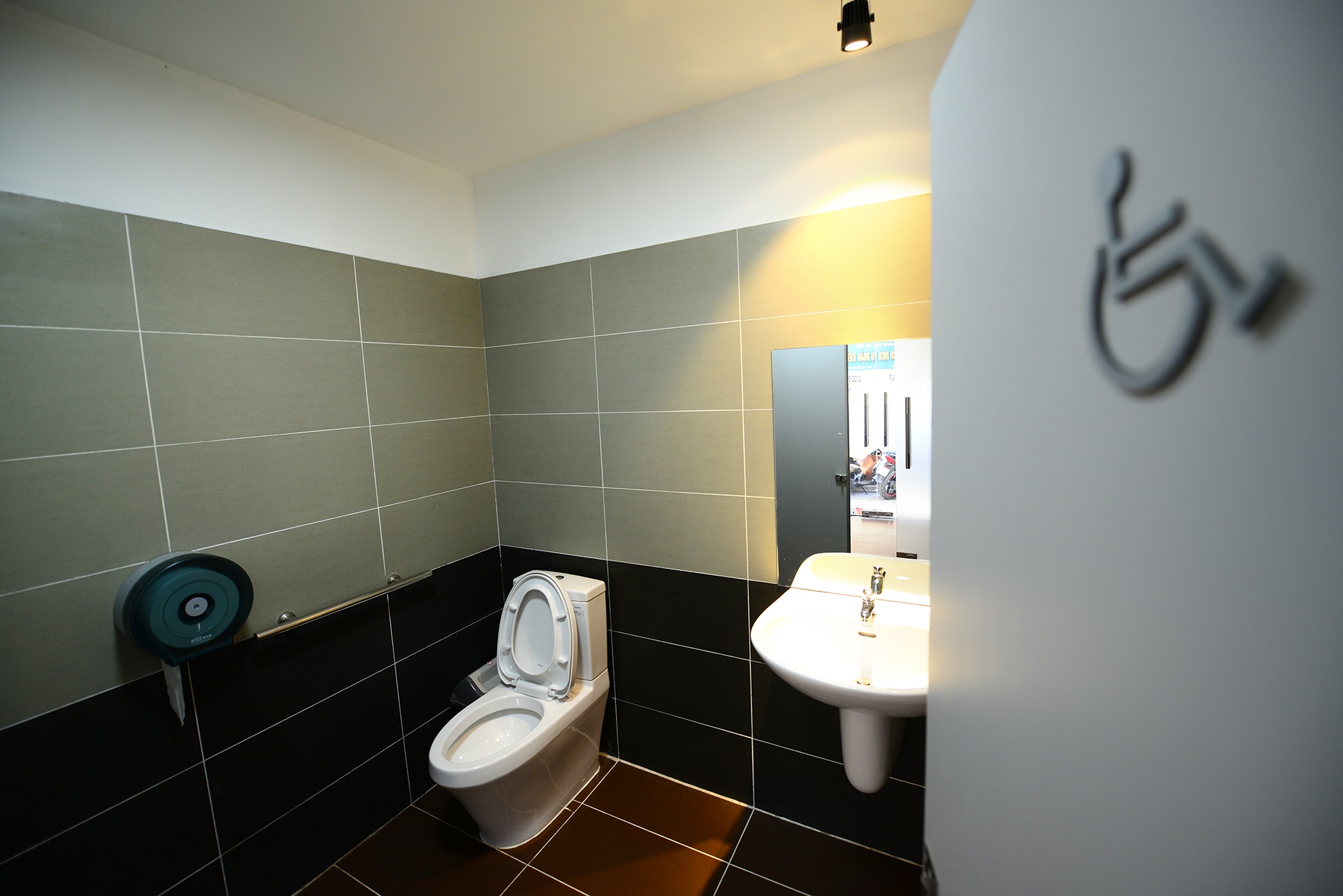 | Buồng dành riêng cho người khuyết tật rộng gần 10 m2 được lắp đặt đầy đủ thiết bị, tiện nghi như một phòng vệ sinh khép kín tại nhà. |