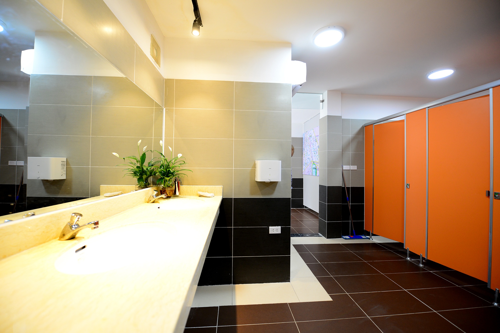 Không chỉ được sử dụng các thiết bị vệ sinh cao cấp, mỗi bên đều có máy làm khô tay tự động.
