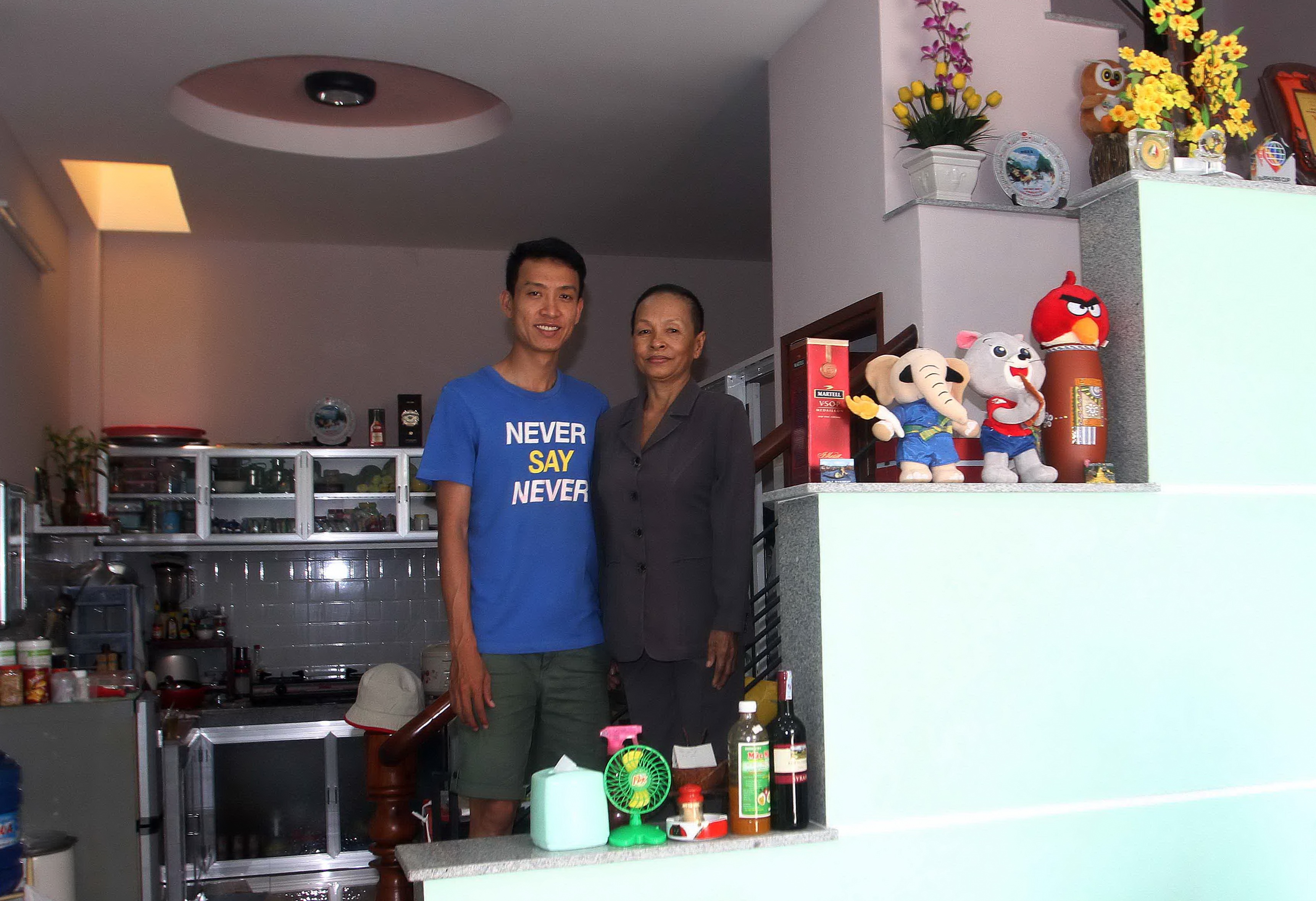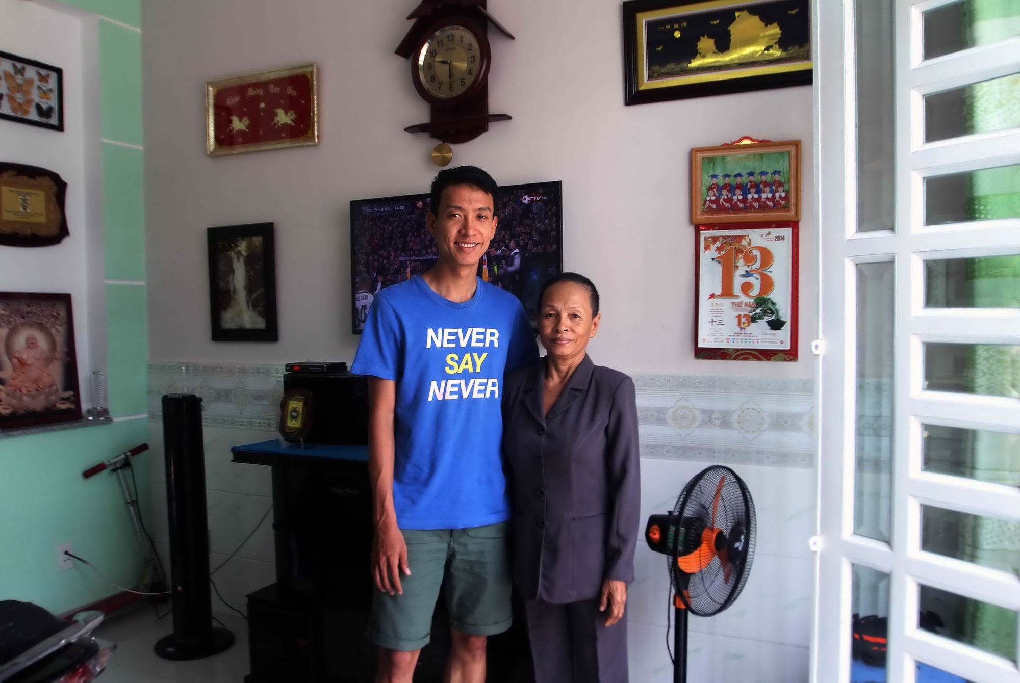 | Võ sĩ Huỳnh Châu và mẹ trong căn nhà mới khang trang. |
