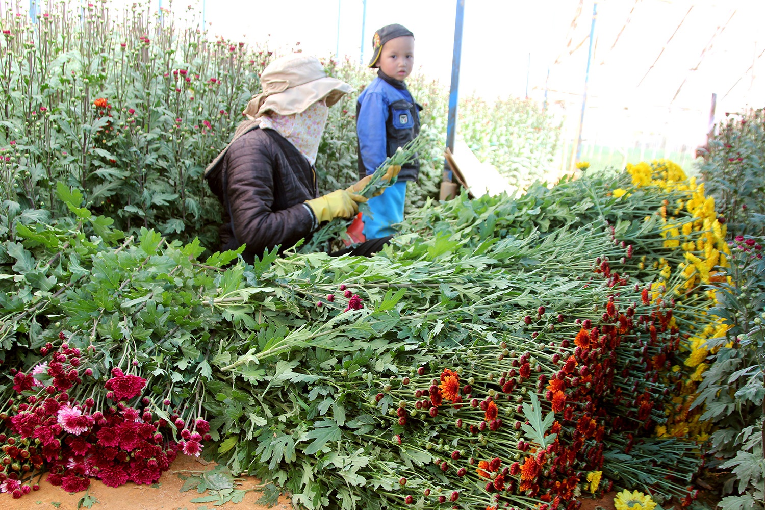 Không khí thu hoạch hoa tại các nhà vườn nhộn nhịp từ sau rằm tháng chạp. Anh Hưng, một nhà vườn trồng hoa cúc cho biết, từ trước 20 tháng chạp, nhiều thương lái đã đến tận vườn để mua hoa. Theo anh, thời gian này, nếu không có những mối chốt giá trước thì cứ lái nào thu giá tốt là nhà vườn sẽ bán ngay.
