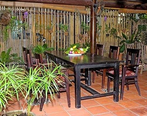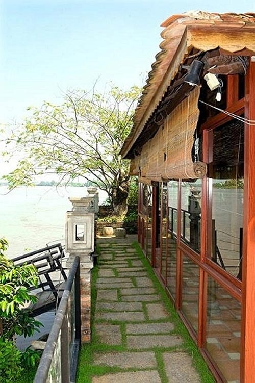 | Với nhiều kiến trúc cổ xưa là mái ngói rêu phong, màu nâu của gỗ hòa cùng màu xanh cây lá, cách thiết kế sân vườn, hồ nước, cây cảnh rất ấn tượng. |