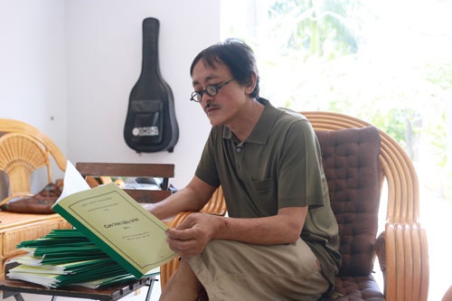 | Giang Còi thường ôm đàn ra chiếc xích đu trong vườn vừa đàn vừa hát. Anh từng có vài năm học guitar và có giọng hát khá hay. |