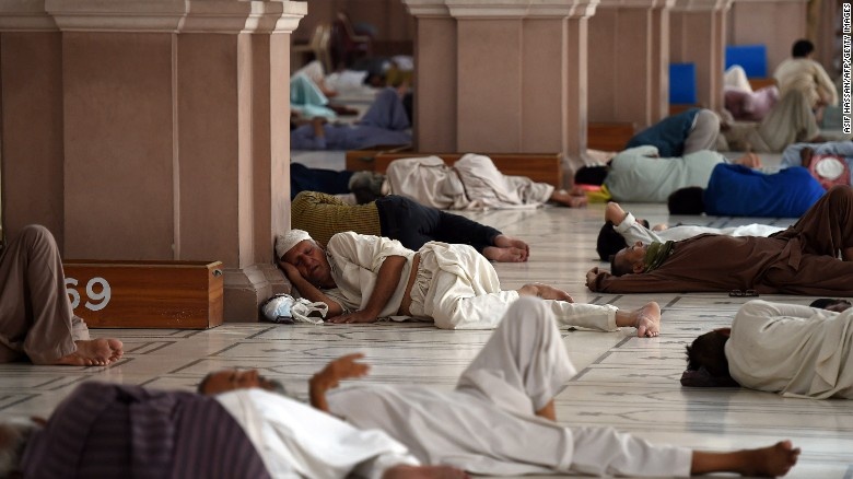 | Người dân thành phố Karachi tránh nóng trong một thánh đường Hồi giáo hôm 22/6. Ảnh: Getty Images |